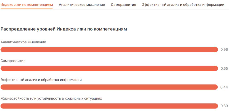 Помимо результатов по компетенциям в виде таблиц и графиков, система генерирует "Краткий отчет для руководителя" с наиболее важными выводами и рекомендациями